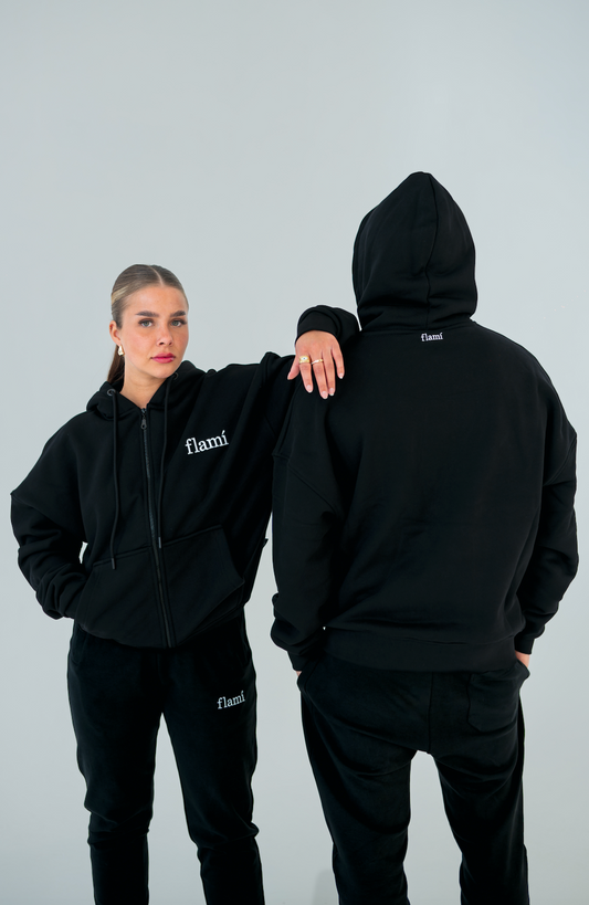 Oversized Hoodie Zipper - Black on Black