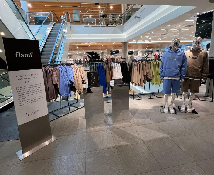 Die Marke "flamí" steht für hochwertige Kleidung mit einem urbanen, zeitgemäßen Design. Flamur Aljiji legt dabei besonderen Wert auf die Verarbeitung, das Design und vor allem die Qualität. Selbstverständlich wurden bei der Produktion der Bekleidungsstücke moralische Werte berücksichtigt.